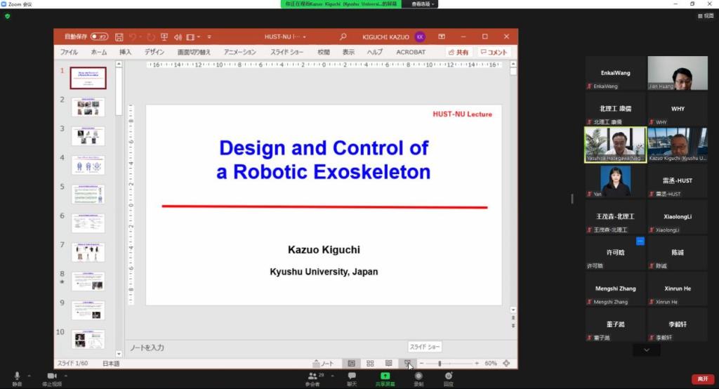 报告结束后,中日师生围绕报告内容,在机器人传感信号的选取和偏瘫患者运动意图识别问题上展开了深入交流。