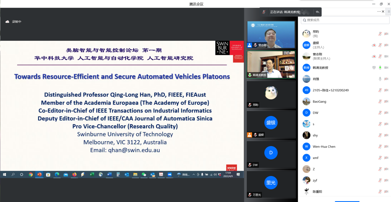 澳大利亚斯威本科技大学副董事长韩清龙教授、澳大利亚阿德莱德大学石碰教授、英国布鲁内尔大学王子栋教授和英国拉夫堡大学陈文华教授出席会议,并做精彩报告,深入探讨了类脑智能与智能控制的前沿科学问题与技术挑战。