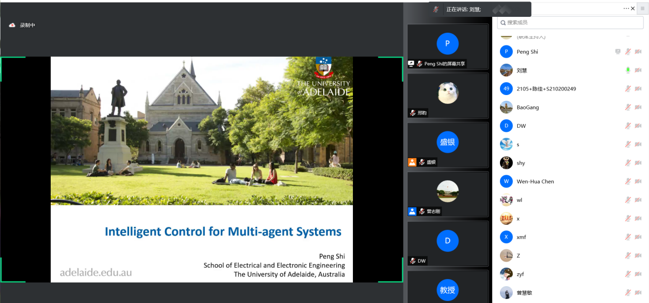 欧洲科公司院士、IEEE Fellow、澳大利亚阿德莱德大学石碰教授作了题为“Intelligent Control For Multi-agent Systems”的报告,介绍了多智能体系统的智能控制技术的基本概念和原理,提出了多智能体智能控制系统设计的基本结构方案,并重点阐述了三种智能控制技术;基于神经网络的多智能体控制技术、基于RL的非均匀多智能体鲁棒控制技术和网络攻击下的弹性控制技术。