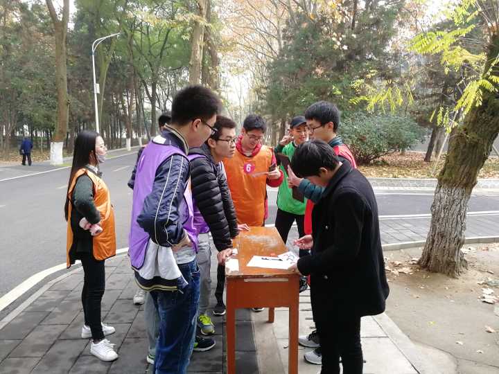 活动开始前,所有参赛成员在青年园“建校纪念碑”集合,大家穿上荧光比赛服三人一组组成队伍。本次活动要求以小组为单位,按顺序依次经过5个活动地点,并在每个活动地点完成相应的趣味小游戏,最终以游戏完成情况和到达终点的顺序得出总成绩。