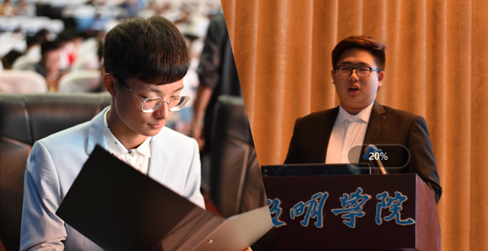 2016级本科生、院员工会主席雷佳鑫代表老生发言,分享了自己老员工涯的体会,希望同学们以学习为第一任务,满怀热忱,坚定信念,度过无悔的四年时光;新生代表、自动化类1805班班长许皓辰同学在发言中表达了对老员工活的期待,倡导同学们克服身边的诱惑,努力学习专业知识,收获自己的华科记忆。