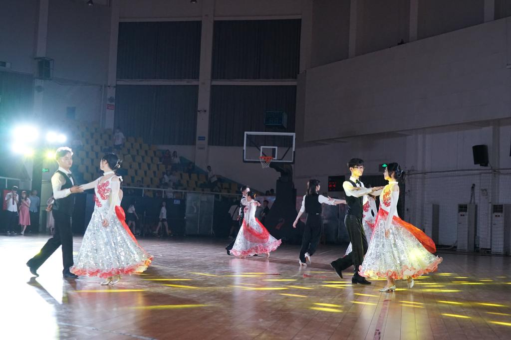 傍晚六点,预约报名的同学们如约来到舞会现场。舞会正式开始前,由国标舞俱乐部的同学进行舞蹈培训教学,男生身着正装、女生身穿舞裙,成为青春校园的一道亮丽风景线。兔子舞、伦巴、慢四……从生疏到熟练逐渐进入状态。
