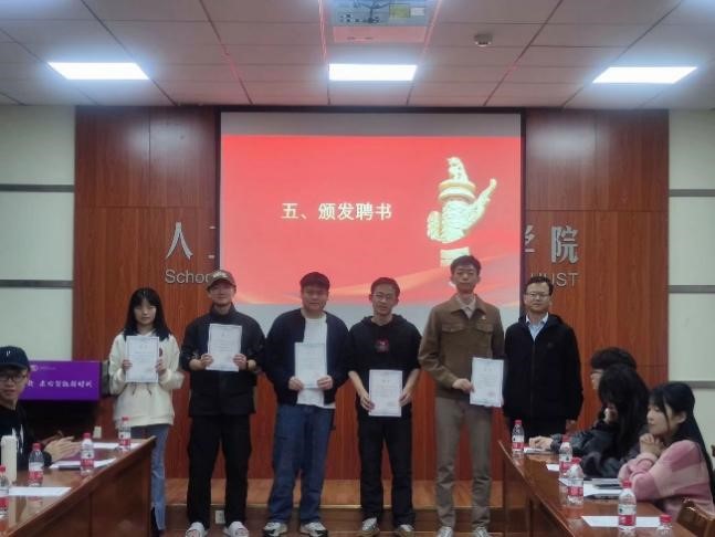 曹攀辉为TapTap第三届研究生党务中心全体成员颁发聘书并合影留念。