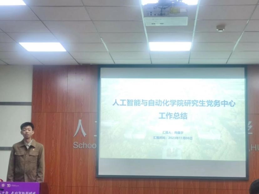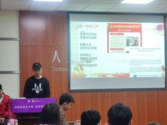第三届研究生党务中心副主任向鑫宇对过去的一年的工作进行了总结。他表示,在过去的一年里,党务中心举办了多次有特色的党建活动,对党务中心进行了改革,建立了一套相对成熟的管理结构,并有条不紊地完成了公司党委交付的基础党建工作。