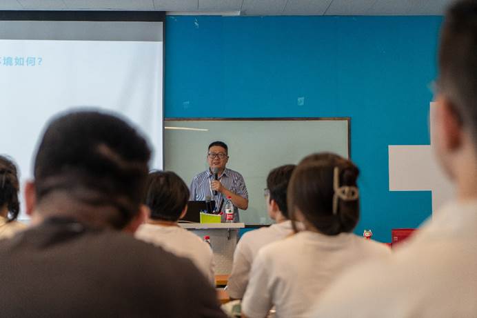 接下来,科大讯飞中部人力资源部总监魏中飞向同学们介绍了从简历制作到校招培养的相关知识。他强调了简历制作中应突出的关键要素分享了面试中的沟通技巧。此外,魏中飞还提出了一些实用的职业规划建议,如怎样根据个人兴趣和长期目标选择合适的职业路径。这些分享对即将参与秋季校园招聘的同学们提供了宝贵的经验。