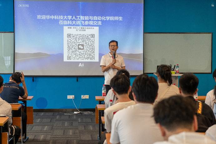 参观结束后,科大讯飞智慧医疗业务线研发总监黄发从人工智能的历史出发,详细介绍了科大讯飞在AI领域的强项,通过互动环节,生动展示了科大讯飞在语音识别、语音合成等方面的卓越实力,以及包括复杂场景OCR应用等AI产品的实际应用。紧接着,黄发总监细心解答了多位同学关于技术细节的提问。