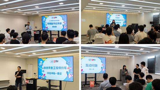 金山游戏开发工程师曹睿分享了金山在游戏开发领域的创新成果和应用,带领同学们走进游戏开发的世界。其关于金山暑期培训营的介绍,引起了同学们的浓厚兴趣。许多同学都表示希望能够通过这一实践机会,在收获技能与成长的同时,明确未来的求职方向。在互动环节,徐霞和曹睿耐心细致地解答同学们关注的专业学习和企业实习等方面的问题,鼓励大家保持热爱,不断提升。