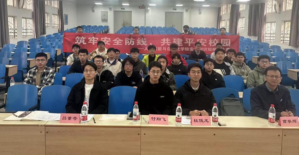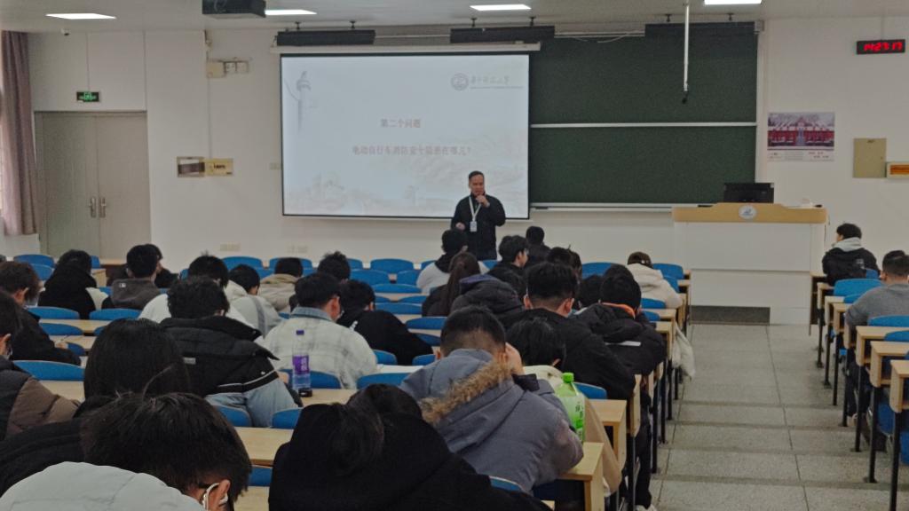 随后,校保卫处消防科舒象春科长应邀开展校园消防安全专题讲座,系统讲解了宿舍用电规范、实验室操作流程、应急疏散要点等核心知识。讲座结合真实案例深入剖析,逻辑清晰、重点突出,既夯实了师生的消防安全理论基础,也让 “安全无小事” 的理念深入人心。互动环节中,师生踊跃提问、深入交流,进一步厘清了日常安全隐患的排查要点与应急处置的关键步骤。