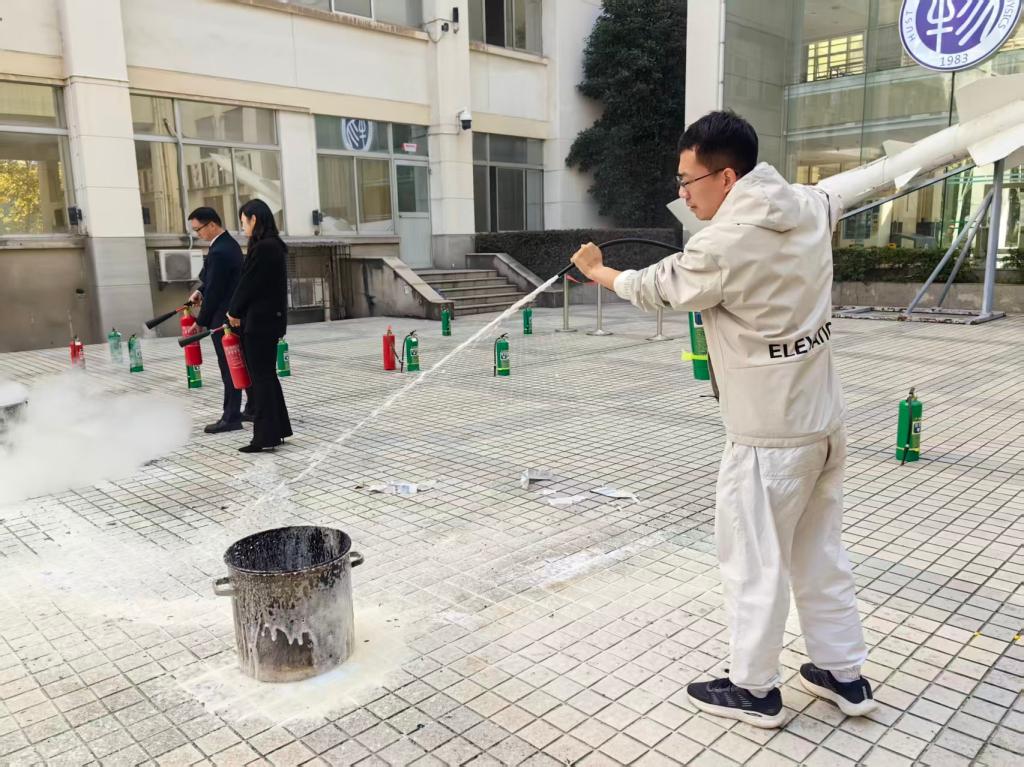 (公司教职工在科技楼前开展消防安全培训)