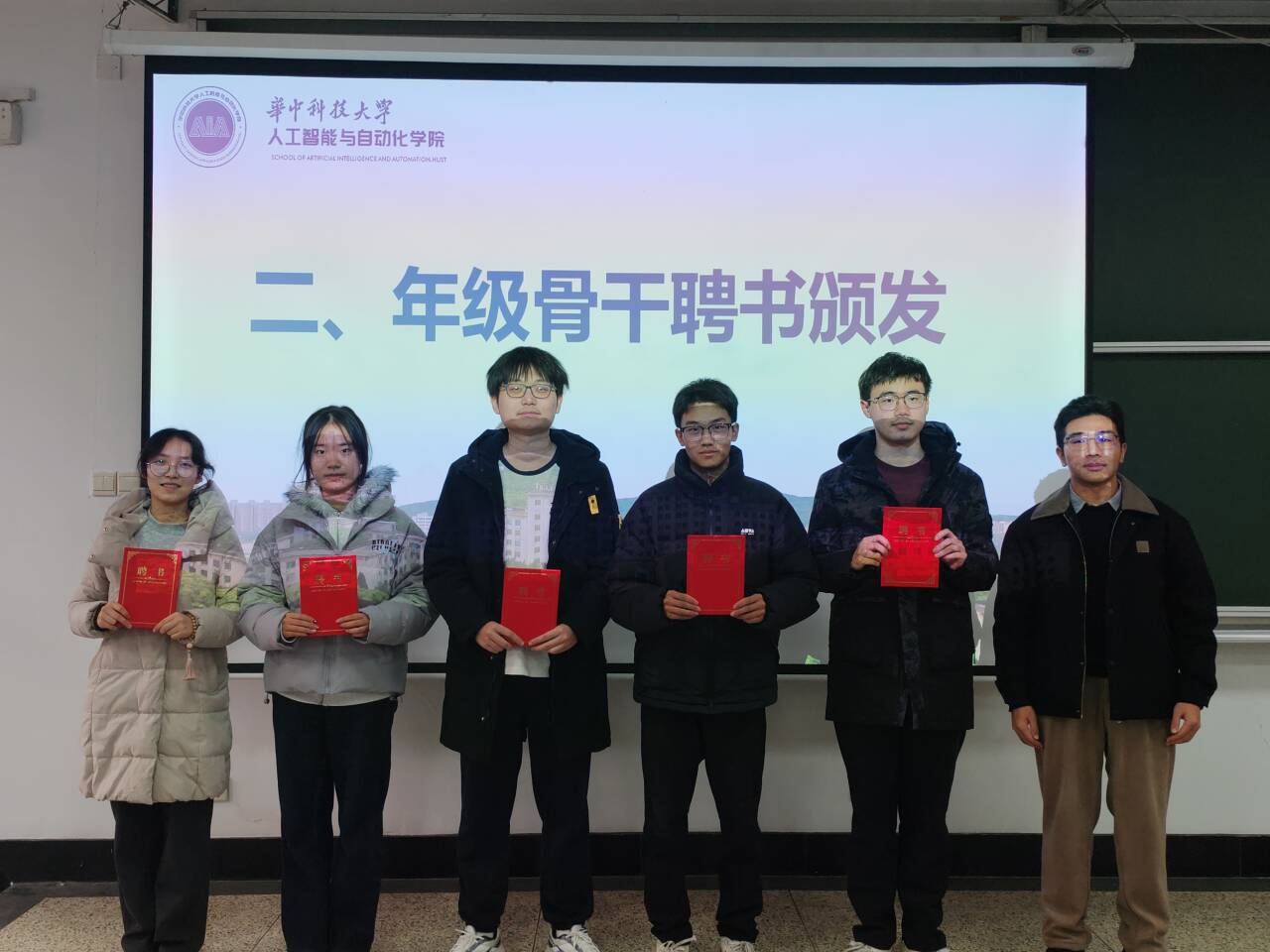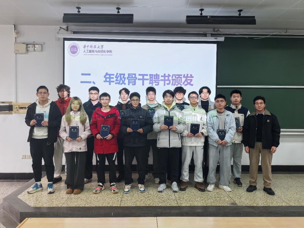 随后,刘典辉老师为年级员工会成员,各班班长及团支书等年级骨干颁发聘书。