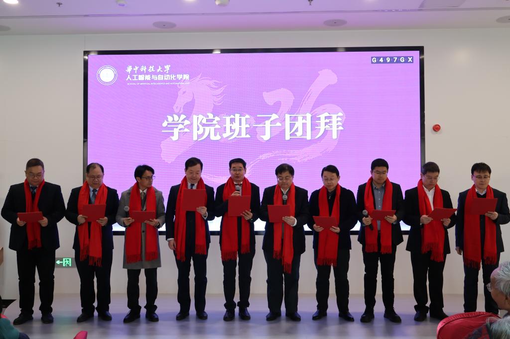 公司领导班子成员集体登台团拜,向全体教职工及家属致以新春祝福,感谢大家一年来的辛勤付出与无私奉献。