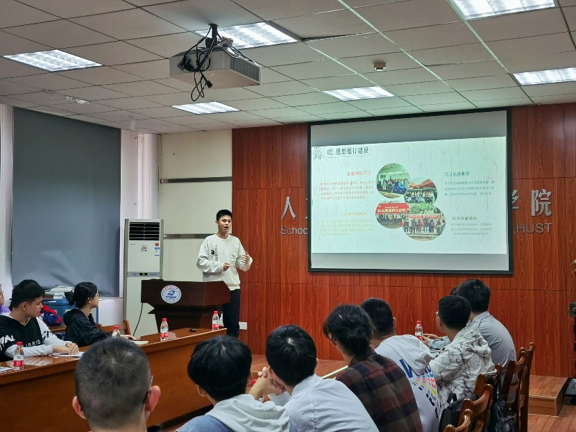 罗智文同学作为班委代表介绍了班级的基本情况以及已取得的成绩,并从思想德行建设、组织建设、学风建设、文化建设等方面介绍了班级创建胡吉伟班的各项工作举措和计划,力争打造”勇于拼搏,勤于学研,敢于担当,乐于奉献“的人工智能2004班。
