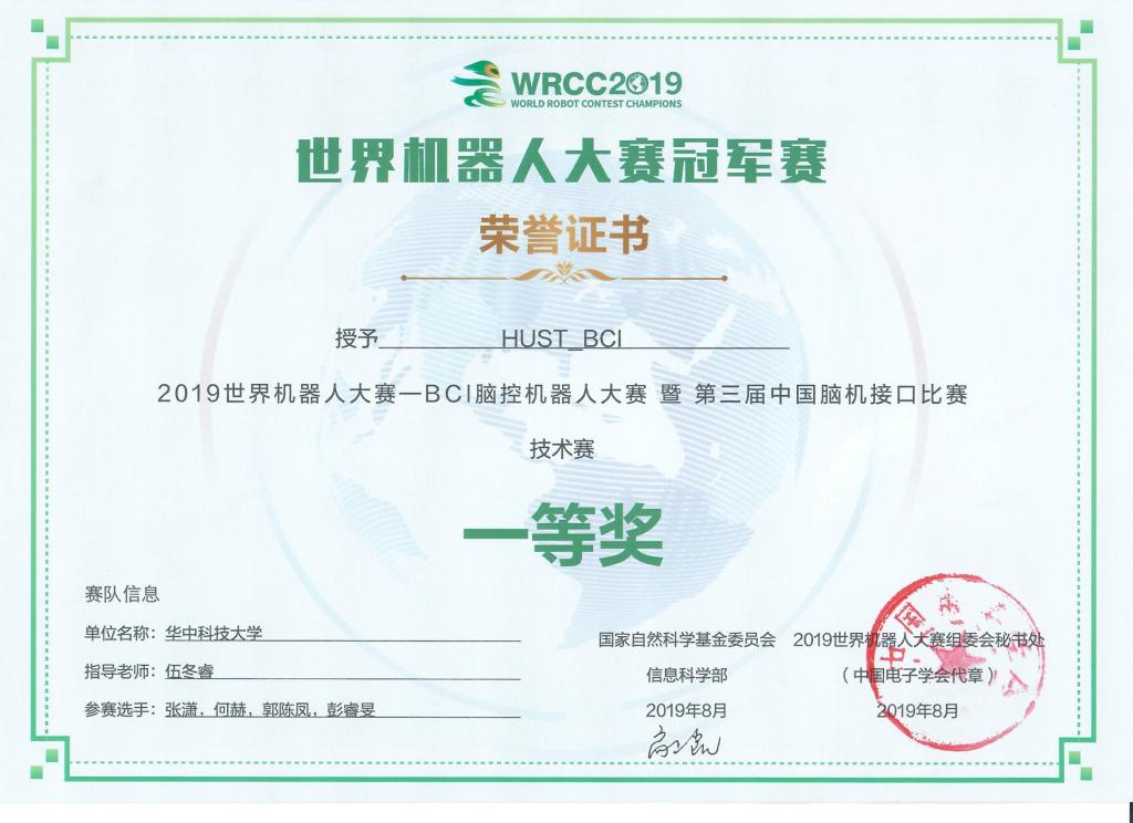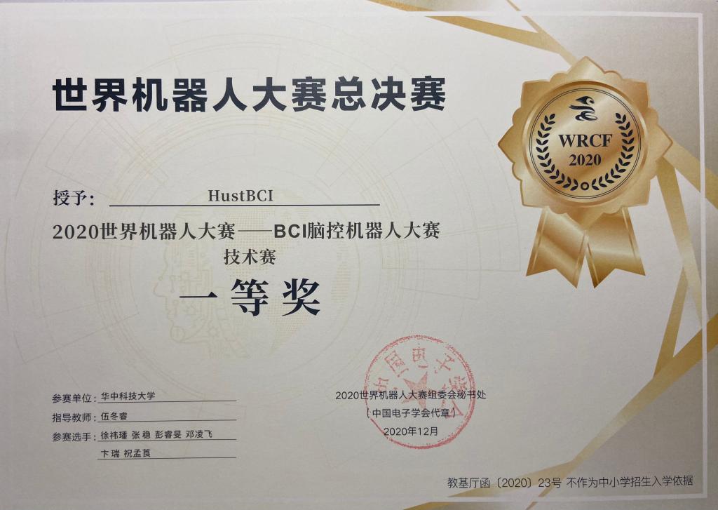 在2019年和2020年举办的BCI脑控机器人大赛中,伍冬睿教授团队也曾分别获得技术赛一等奖。