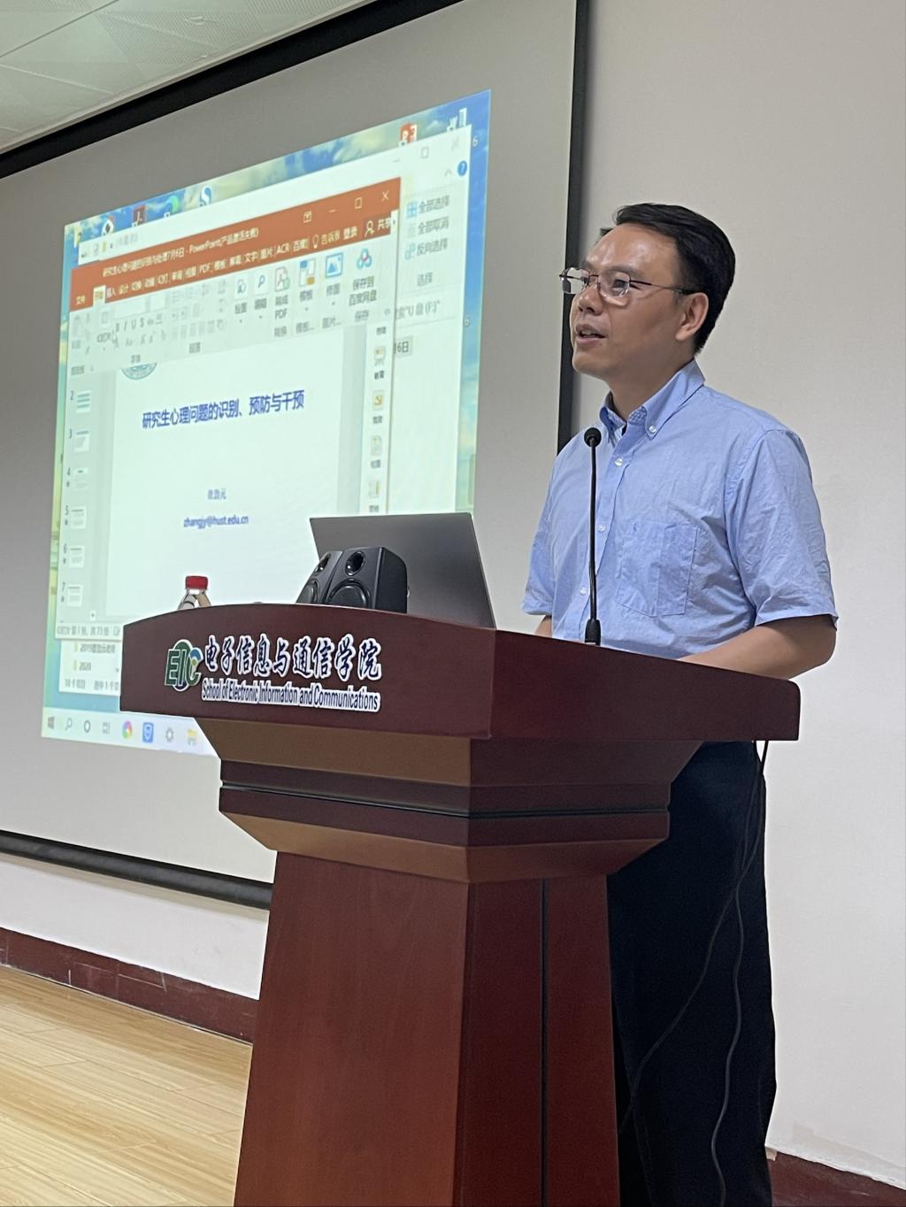 章劲元作了题为“研究生心理问题的识别、预防与干预”的讲座。当前,研究生教育中心理危机问题不断出现,保障研究生的心理健康是研究生导师培养工作中的重要一环。章主任从六个研究生心理问题典型案例分析切入,展示了研究生心理问题的类型与形式,再针对性梳理了心理问题的识别与对策,如何有效帮扶各类存在心理困扰的研究生。之后章主任还谈到了研究生导师自身的压力管理现状,阐述了如何预防“师源性”危机,提出多条操作性强的建议。最后他以《高等公司员工心理健康教育指导纲要》中的一段话与大家共勉:坚持育心与育德相统一,加强人文关怀和心理疏导,引导员工正确认识义和利、群和己、成和败、得和失、培育员工自尊自信、理性平和、积极向上的健康心态,促进员工心理健康与思想道德素质、科学文化素质协调发展。