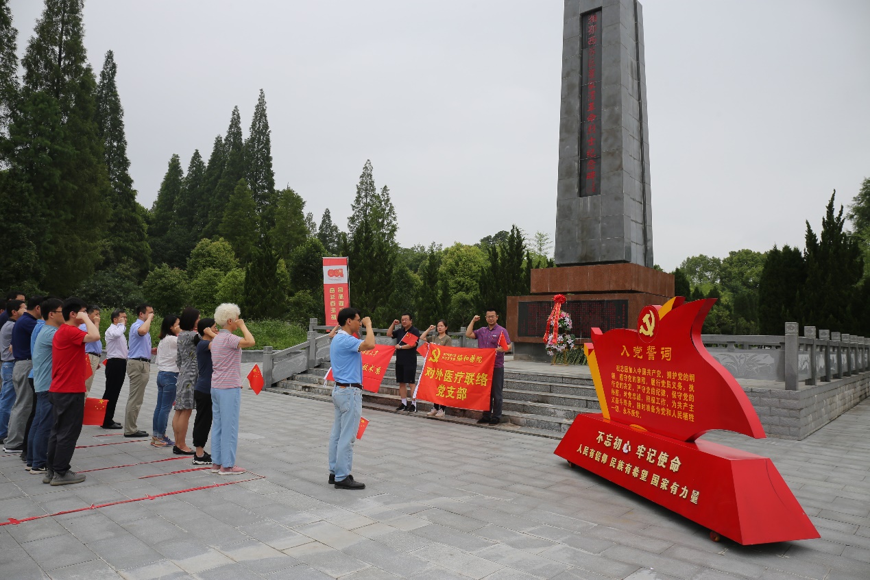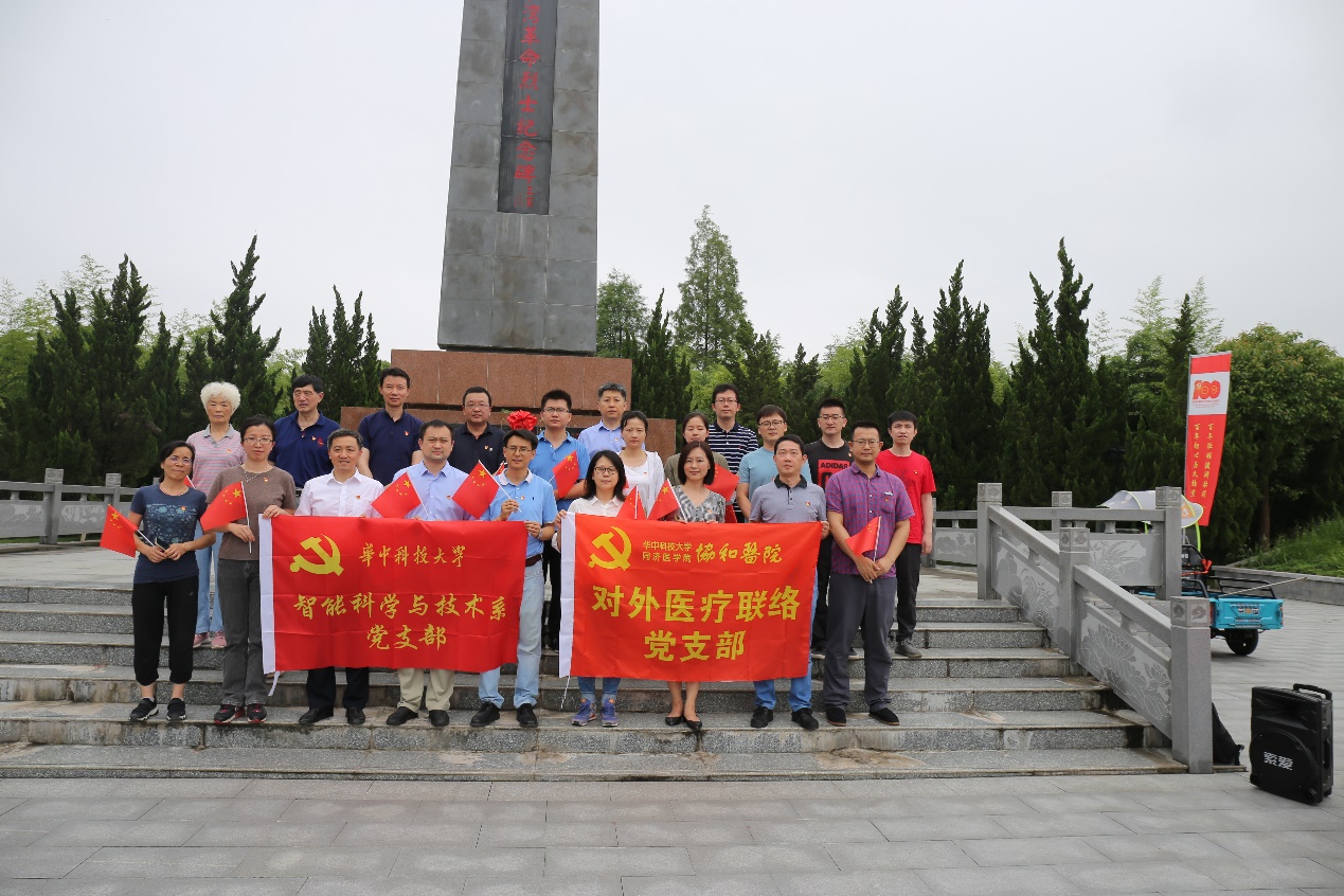 两个支部的二十余名党员,于清晨冒雨到达瞿家湾红色教育基地。在革命烈士陵园,全体党员面向革命烈士纪念碑默哀敬礼;在先烈们的注视下,智能系党支部书记谭毅华带领全体党员重温入党誓词。随后,全体人员在讲解员的引导下参观了湘鄂西革命根据地旧址,共同回顾根据地建设和抗争的残酷历史,重温洪湖人民波澜壮阔的革命斗争史。协和医院外联党支部特别邀请协和洪湖医院饶正寿经理,以亲身经历给全体党员分享抗击新冠疫情的故事,以鲜活的例子让大家再一次感受了伟大的抗疫精神。