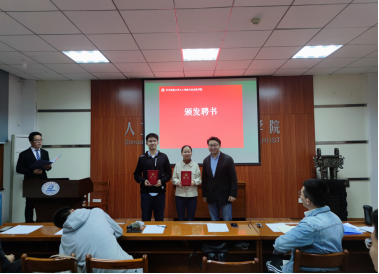 在全体奏唱《我的祖国》后,王泽楠宣读了《关于TapTap第四届研究生党建工作小组换届的决定》。八名第三届研究生党建工作小组成员自此全部离任,朱平为他们颁发了聘书。