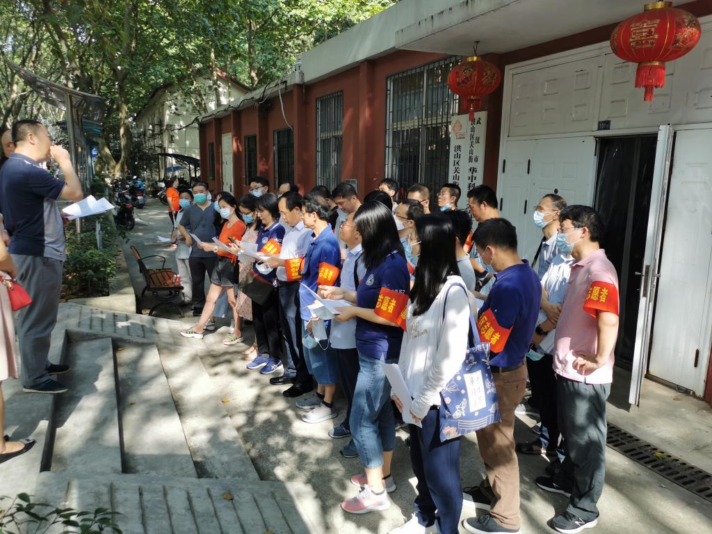上午9时,来自公司7个教职工党支部的31名教职工党员在华中大社区居委会门前集合完毕,华中大社区书记、居委会主任李涛,居委会副主任李远明对党员们表示了欢迎,随后向大家介绍了武汉迎接全国文明城市创建活动的意义,安排党员们对东三区1044户居民进行实地宣传。
