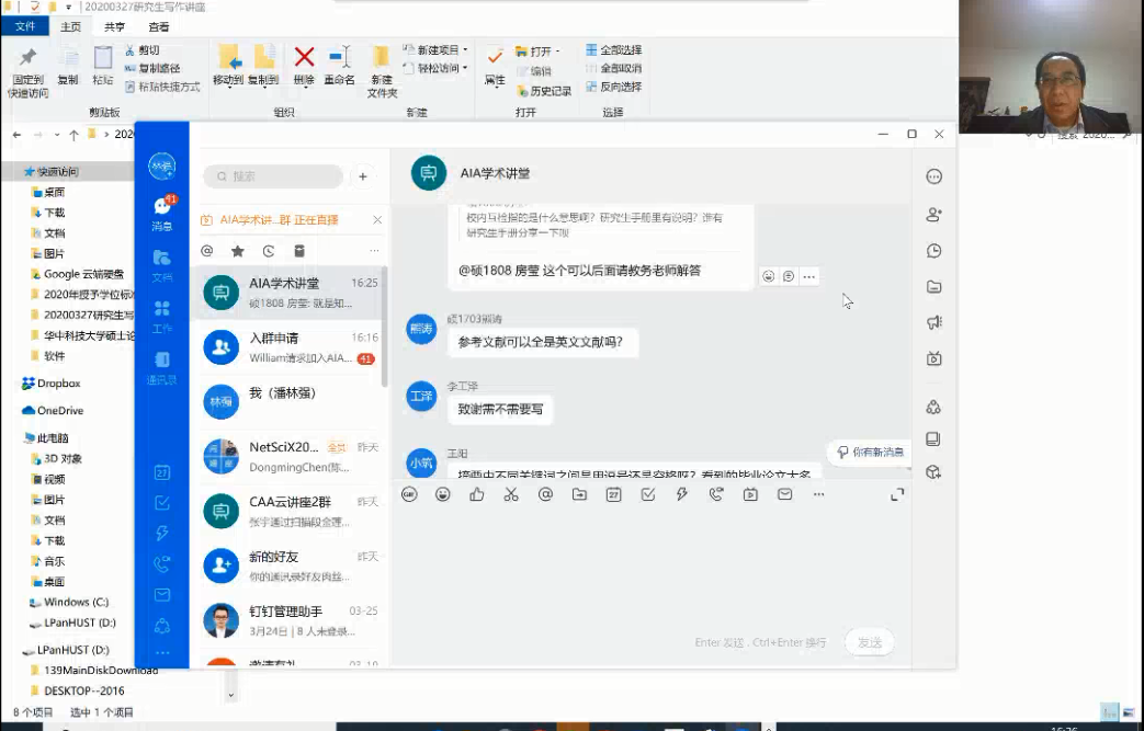 观看讲座直播的同学在认真听讲的同时,也不忘积极互动。对于不少同学提出的与学位论文写作、评审相关的共性问题,潘林强也一一作出了具体解答。近两个小时的讲座直播结束后,参与的同学表示收获颇丰。16级博士吴肖龙觉得讲座对学位论文的写作非常有帮助,从Latex公式到word封面、正文排版都讲解的非常细致,同时对于盲审要求的讲解也非常细致,有助于提升学位论文的逻辑、句式及各章节撰写技巧,令自己受益匪浅;17级学术型硕士唐淑贤非常感谢公司在疫情期间对毕业研究生的关心和指导,表示作为毕业研究生应该发挥主观能动性,充分利用网络资源提高主动解决问题的能力;18级的工程硕士房莹特别提到,潘老师在多个关键细节位置给予了详细的说明,,耐心解答了大家在修改论文和准备送审过程中的诸多问题,这份关心和帮助来的“非常及时”。