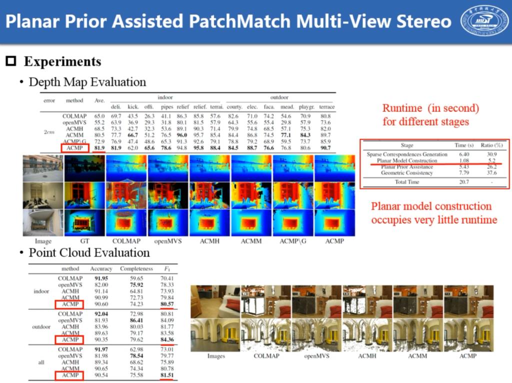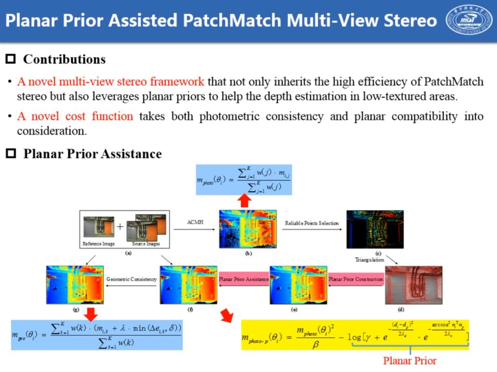 博士生徐青山同学在AAAI2020会议上发表论文两篇。论文“Qingshan Xu, Wenbing Tao*, Planar Prior Assisted PatchMatch Multi-View Stereo, AAAI2020” 提出了三角网格平面先验引导的PatchMatch的多视图立体重建算法,利用概率图模型对多视图立体重建中的平面先验和视图选择进行建模推理,使得算法对弱纹理区域具有更为鲁棒的三维重建性能。