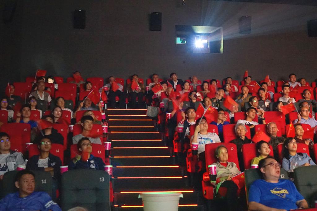 观影现场,全体师生完全融入了故事情境当中,气氛热烈,每到激动人心的时刻,全场便会响起热烈的掌声,为主人公的英勇与无畏点赞,更是为祖国的七十华诞点赞。“我和我的祖国,一刻也不能分割,无论我走到哪里,都流出一首赞歌……”,熟悉而亲切的歌声响起,师生自发的起身合唱,随着旋律挥动着手中的小国旗,脸上写满骄傲与自豪。