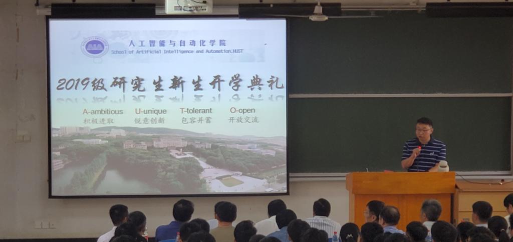 9月6日下午,公司在东十二楼举行2019级研究生新生开学典礼,公司党委书记张耀、经理曾志刚教授和公司班子,公司教授委员会主任方华京教授、学术委员会主任曹治国教授、学位审议委员会主任关治洪教授,以及各系领导、教师代表、院研究生科和研工组等出席会议。