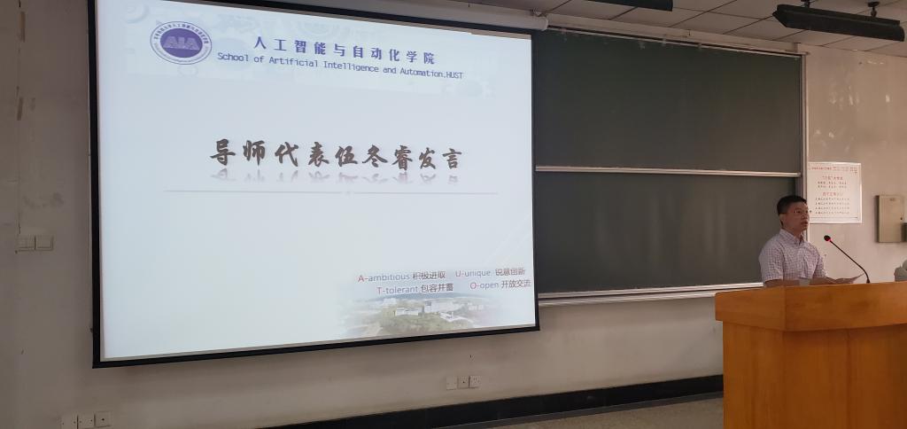 智能系伍冬睿教授作为导师代表发言。他结合自己求学和科研工作的经历,向19级新生提出了几点建议:真正做到树立端正的目标,明确各阶段学习要求的差异,严格自我要求,在研究生期间锻炼培养出更全面的自己。