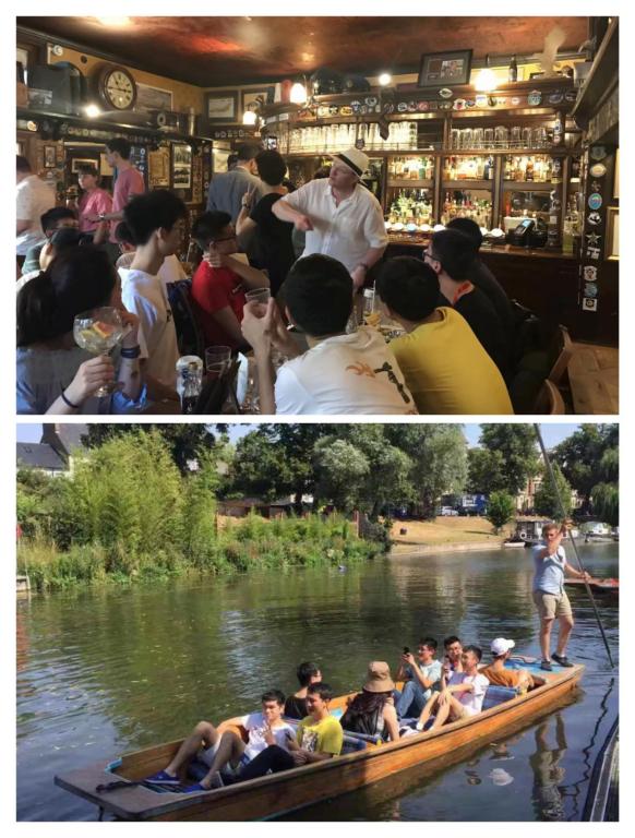 老鹰酒吧晚餐使同学们体验了英国独具特色的酒吧文化,了解了许多历史与故事。克里克和沃森在这里宣布发现DNA的双螺旋结构;不仅如此,酒吧天花板还能看到二战时的一些记忆;墙上随处可见的涂鸦让员工们近距离感受历史与文化的魅力。康河泛舟,途经数学桥、国王公司、叹息桥等多个著名景点,精彩的人文风情体验更开阔了同学们的视野,也让员工更加理解了徐志摩的诗句。