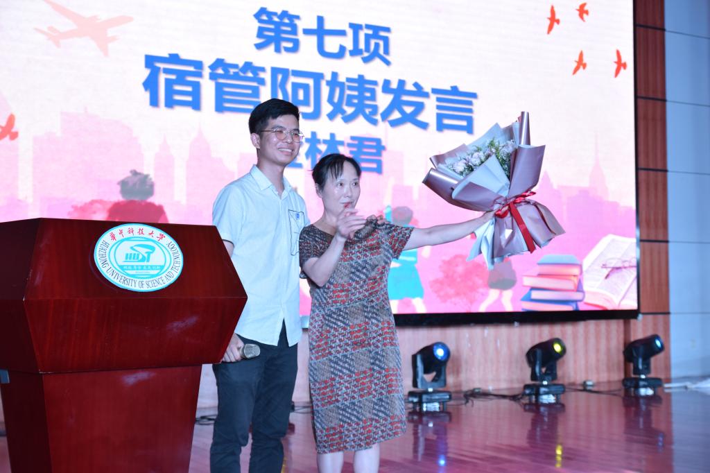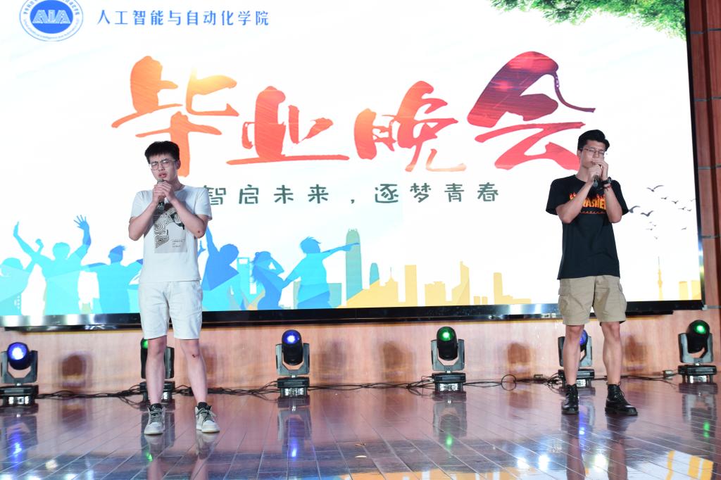 毕业典礼在全场齐声合唱《歌唱祖国》的歌声中圆满结束。活动进入毕业晚会环节。