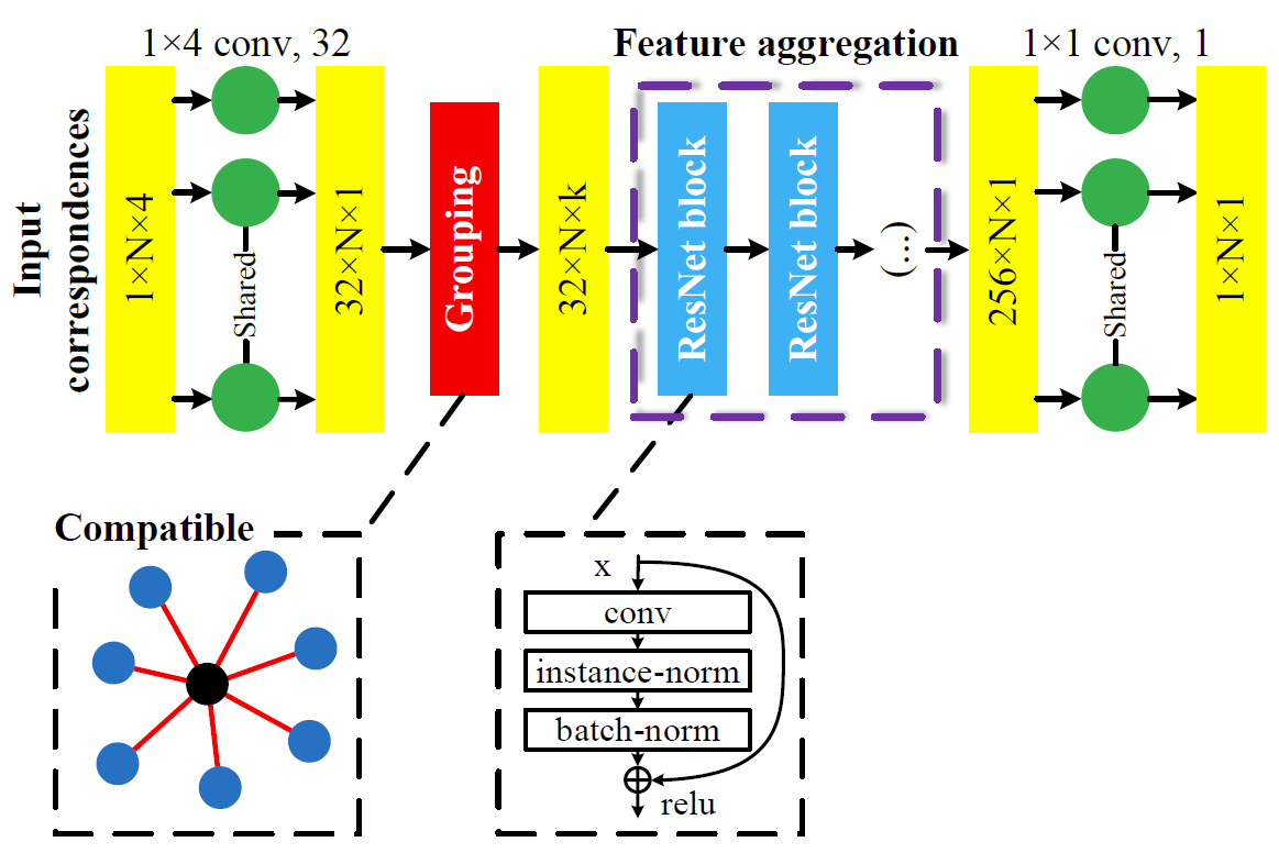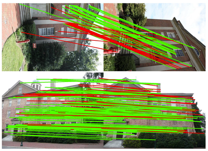 论文提出了一种基于兼容性邻域筛选的图像特征一致性筛选算法,克服了现有图像特征一致性筛选算法中,几何空间邻域内兼容性差的问题。该研究通过基于兼容性的邻域筛选算法,为图像中潜在的正确匹配提取出具有一致性的邻域信息,并使用卷积神经网络进一步融合提取出的局部邻域信息,最终输出所有初始匹配线的标签(正确匹配或错误匹配)。该方法与现有图像特征一致性筛选算法相比,有效提取了匹配线周围具有一致性的局部信息,并通过基于深度学习的卷积神经网络框架充分利用,所提取的有效信息,在具有单一致性和多一致性的数据库中均取得了较好的一致性筛选效果。