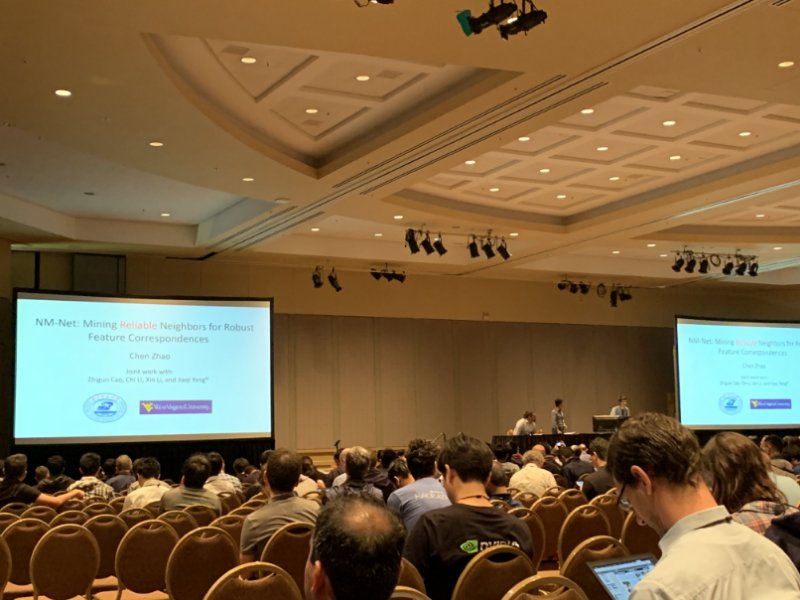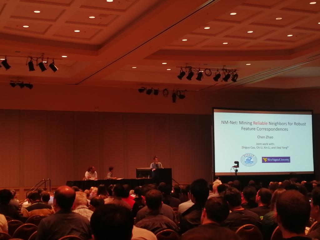 6月18日,公司曹治国教授团队的最新研究成果(NM-Net:Mining reliable neighbors for robust feature correspondences)在国际顶级学术会议IEEE International Conference on Computer Vision and Pattern Recognition (CVPR) 2019发表,论文第一作者、2017级硕士生赵晨同学在大会进行口头报告。