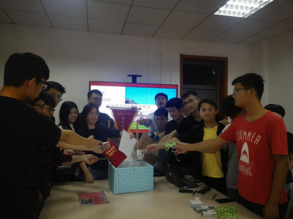 此外,各班级以“又到毕业季,难舍师生情”为主题陆续召开最后一次班会。“愿四年后的你成为心中最荣光的榜样”测控1501班的同学们打开四年前写给自己的一封信,回顾了初入大学时的愿望。自动化1504班的同学将优秀班级证书、金工实习、电工实习产品等有纪念意义的物品放入“时光盒子”交给班主任胡晓娅老师保管,约定十年后再一同打开。自动化1501班班主任何顶新老师在班会上鼓励同学们志存高远,保持家国情怀,为中华民族伟大复兴做出贡献。