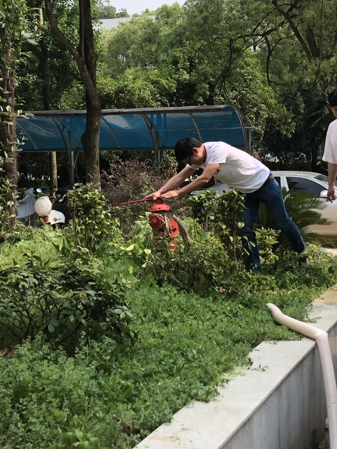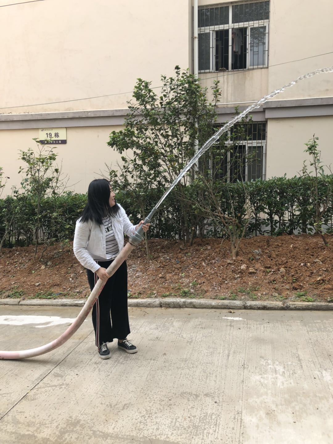 随后,全体人员来到室外消防栓处,学习如何正确使用消防栓取水,如何正确连接消防水带和水枪,如何正确喷水灭火以及如何保障操作的同步进行。在保卫处工作人员的指导下,部分员工代表两人一组,共同体验了接带—开栓—喷水的全过程。