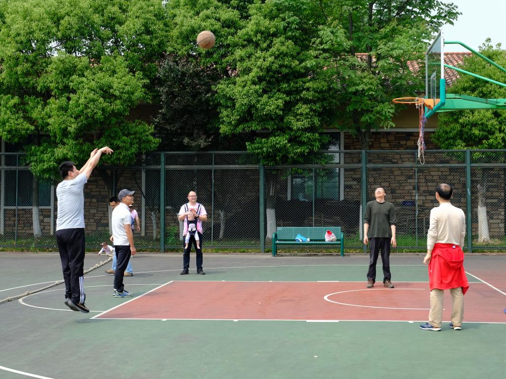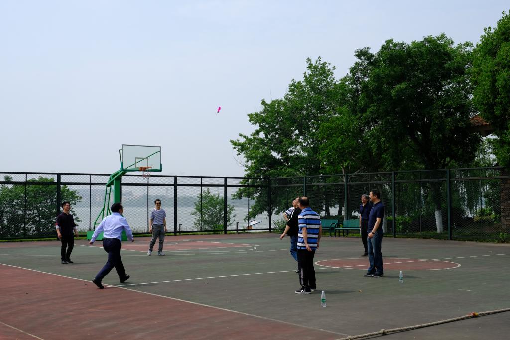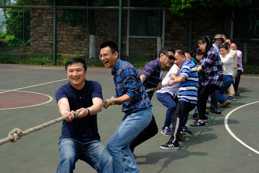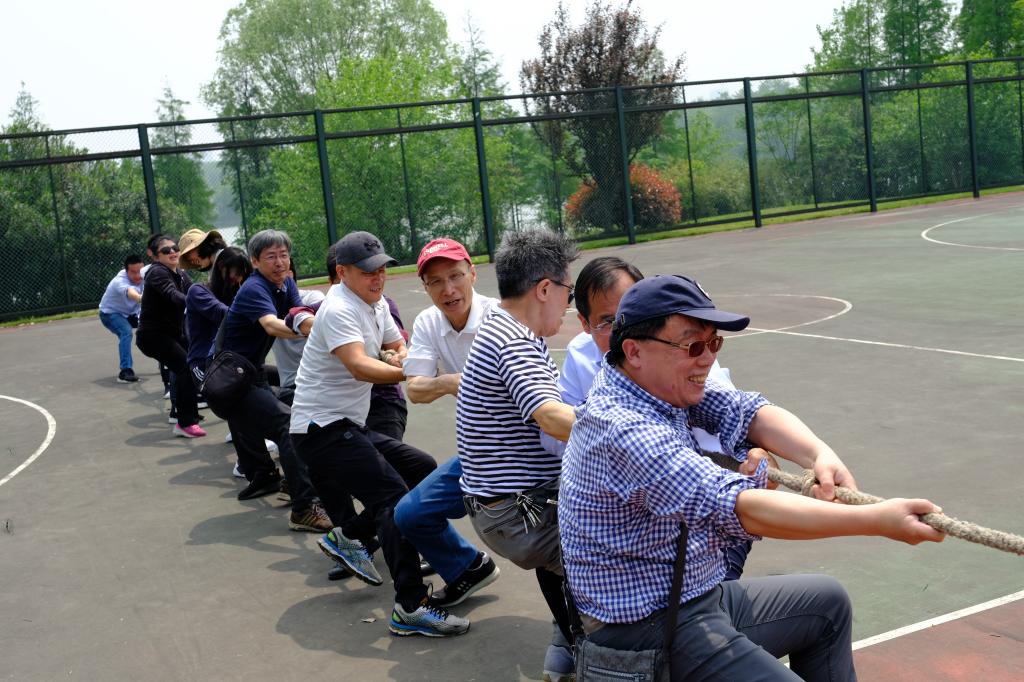 严西湖碧草如茵的湖岸小道,微风习习,杨柳依依,令人陶醉。老师们或三五成群,高谈阔论,或快意双行,轻言慢语。岸边墅区连绵的建筑掩映在浓荫之下,自成一派风格。阳光和煦,鸟语花香,沁人心脾。在饱赏春光春景之后,全体教工齐聚运动场开展集体趣味活动,比试体魄。大家玩起了花式踢毽、跳绳、运球上篮,最后在孩子们的欢呼与喝彩声中,老师们分为两队进行拔河比赛。在整齐有力的“一二一二”的号子声中,双方队员全力以赴、乐在其中。虽然比赛终有胜负,但胜出方欢呼不断,惜败方亦笑声连连,运动场上洒满了欢声笑语。