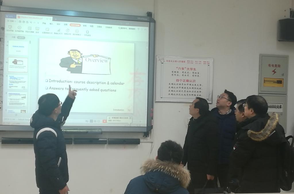 本次查课选择了《计算机网络》《模拟电子技术》《微积分》三门课程,分别针对除大四年级外的所有本科生。虽然气温很低且下着小雨,但几乎所有课堂在上课十分钟前,员工已基本到齐,未发现大范围迟到缺课情况,未发现授课老师缺勤迟到情况,课堂秩序良好,课堂氛围热烈。在D101教室,领导班子还同何顶新老师探讨了新配备的电教教室中,教学设备的使用情况。