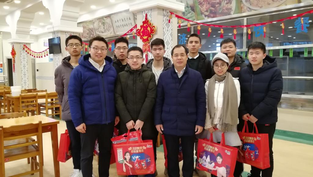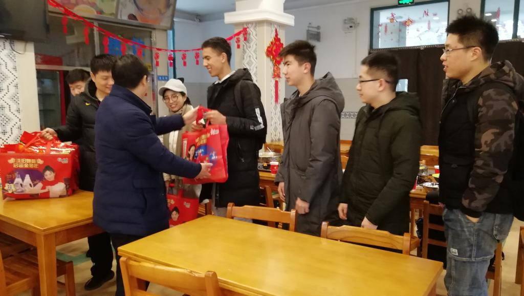 1月28日中午,公司党委书记张耀、副书记朱平同春节留校员工一起共进午餐。今年有两名维吾尔族的2018级本科生留校,为尊重民族员工饮食习惯,贯彻八项规定精神,进餐选定在韵苑校区清真食堂进行。张耀依次了解同学们的家庭情况,关心其在校期间的个人安排和食宿状况,并叮嘱同学们留校期间要注意个人安全,有任何困难及时和公司、老师联系。餐后,张耀为同学们送上了事先准备好的春节用品大礼包,提前预祝他们新年快乐。