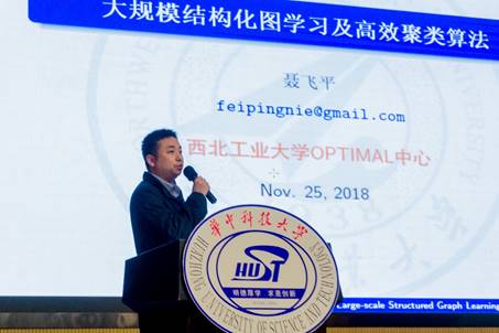 西北工业大学聂飞平教授作了题为“大规模结构化图学习及其在大数据聚类中的应用”的报告,报告介绍了一种基于结构化二部图学习的快速聚类方法,该方法在避免了随机初始化对最终聚类结果造成影响的同时,降低了复杂度,提高了聚类精度和效率。