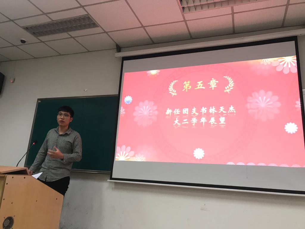 “囧照大比拼”环节使班会氛围走向轻松愉悦,最后一张展现在屏幕上的囧照是胡吉伟班前任团支书张思敏同学,她由于身体原因休学,将无法追赶上大家的脚步,班级同学为表达对她工作付出的感谢与深深思念之情,特地集体录制视频送给远在湖南的她。“小小的身影,却有着高大的灵魂,忘不了你在昏暗灯光下,敲打键盘的孤独,忘不了你在东操主席台上,主持排练的认真,忘不了你在团会教室里,操控全局的自信,即使现在你不在我们身旁,我们仍然心系于你,张思敏,我们等你回来!”现场的温情氛围令人动容;新任团支书林天杰围绕思想建设和学风建设两大主题,提出了一些切实可行的措施,对大二学年进行了学期展望。