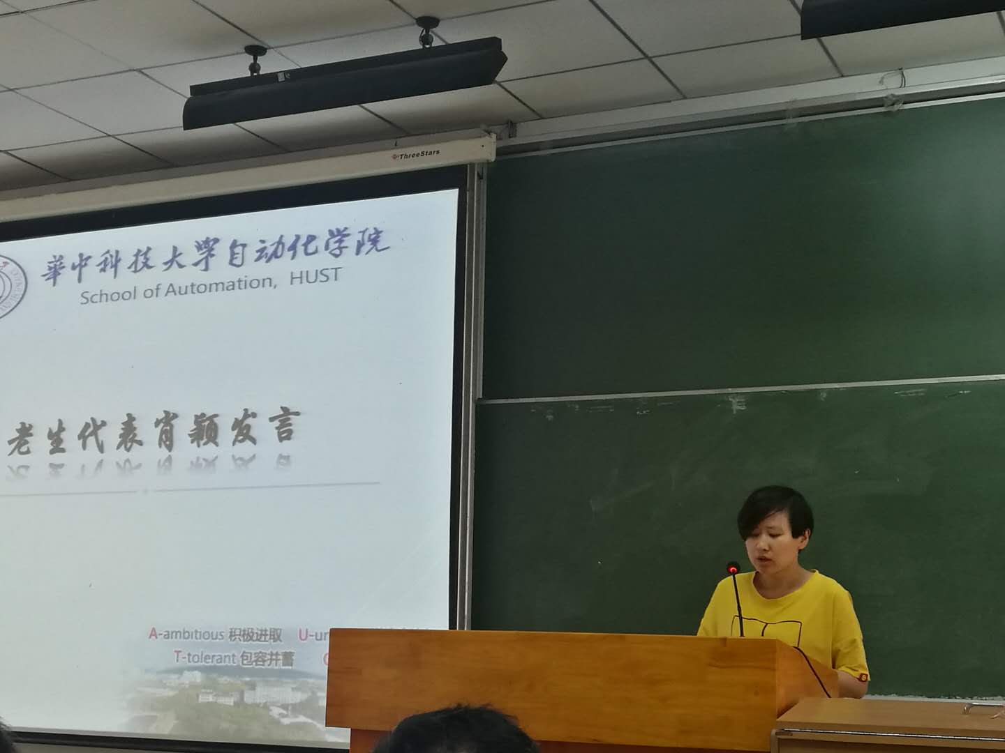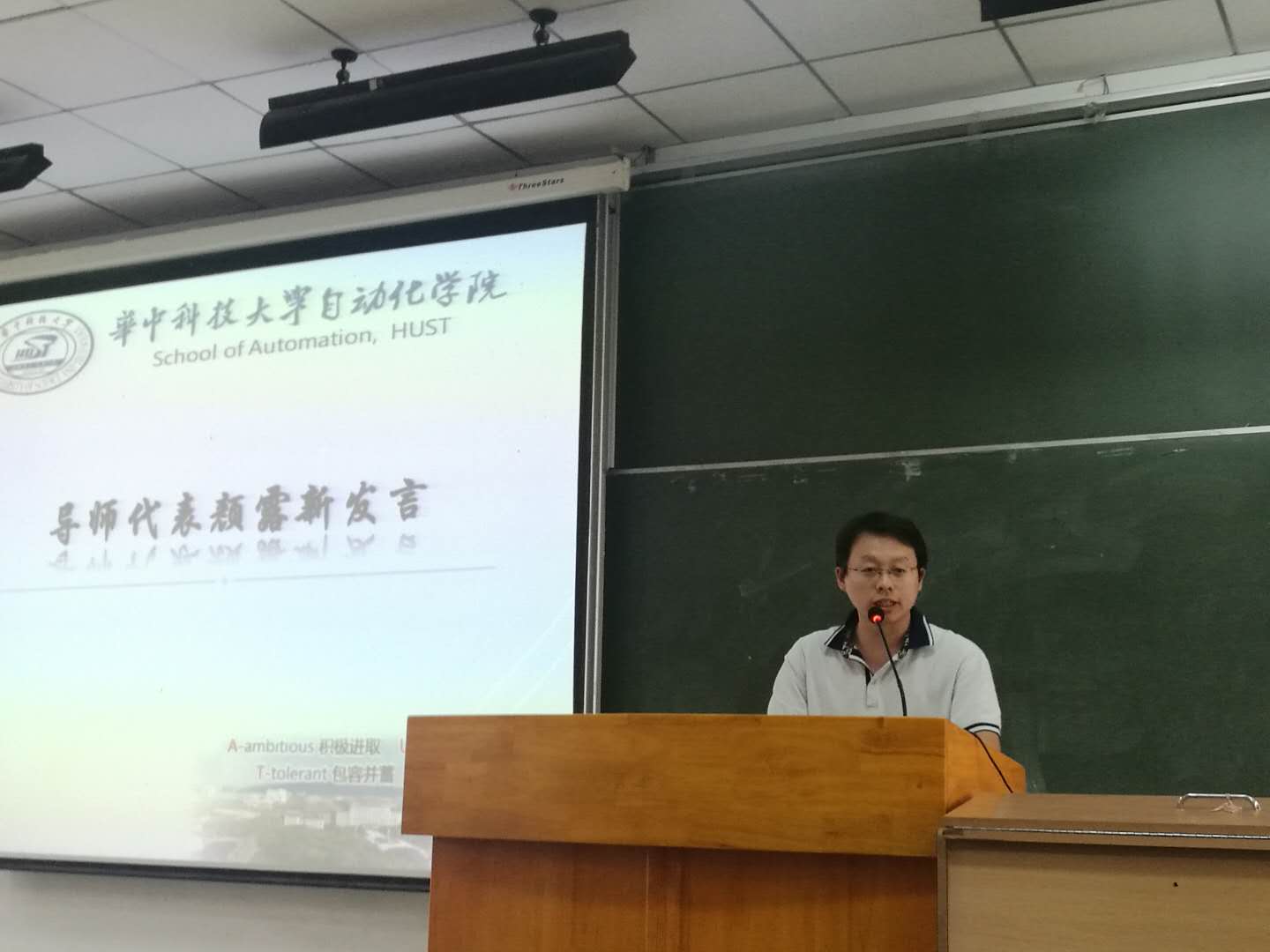 2017级研究生肖颖作为老生代表发言,她认为研究生阶段,需要听从导师的指导,合理规划时间,参加各类活动,拓宽视野和思路,最重要的是要学会与不同的人进行沟通,获取对自己有益的知识和信息;2018级研究生连天培代表新生发言,他结合自己在云南临沧一年的支教经历和心得体会,提醒大家珍惜良好的学习环境和丰富的学习资源,并鼓励大家勇敢地迎接科研道路上的挑战,大胆创新,修身立德,树立远大志向。