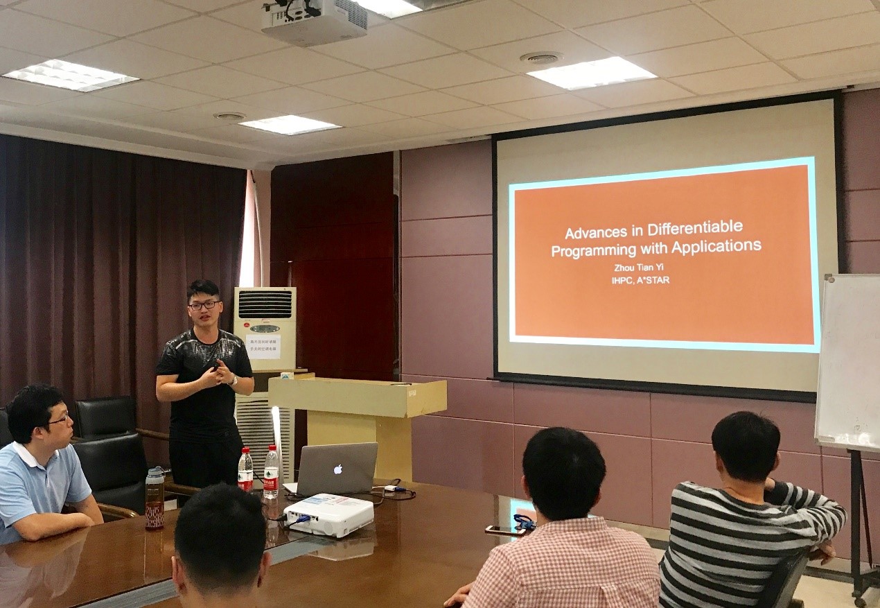2018年06月11日下午2点,新加坡A*STAR(Agency for Science, Technology and Research)高性能计算研究所(IHPC)周天异研究员应肖阳副教授邀请来自动化公司作了计算机视觉和机器学习相关研究的学术报告,报告的题目是“视频监控中的异常事件监测”。报告会由肖阳副教授主持,公司从事模式识别和机器视觉相关研究的老师和员工共20余人参加了报告会。