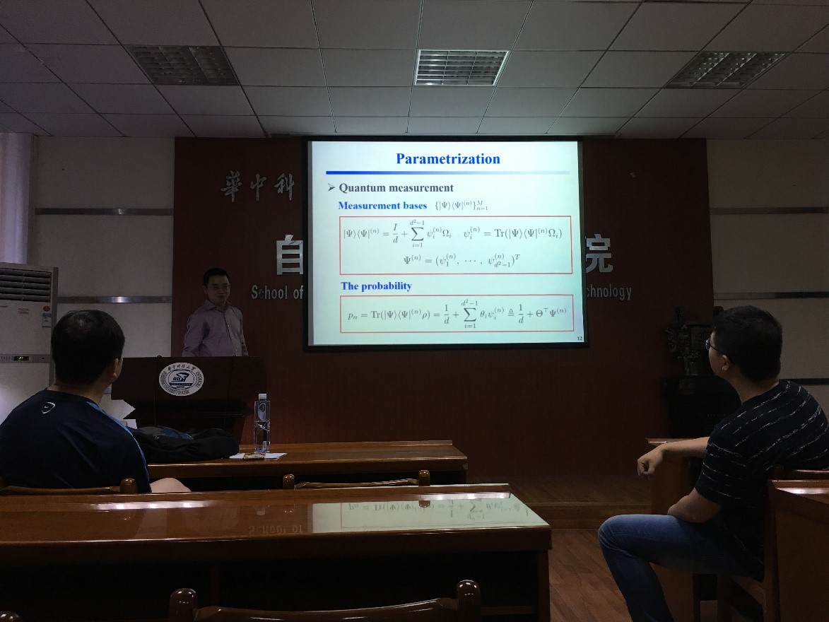 6月27日上午,澳大利亚新南威尔士大学董道毅教授应张海涛教授邀请来公司进行学术交流,并做了题为“Efficient quantum state estimation and Hamiltonian identification”的学术报告。报告会由张海涛教授主持,自动化公司袁烨教授,李远征老师等30多位师生参加了报告会。