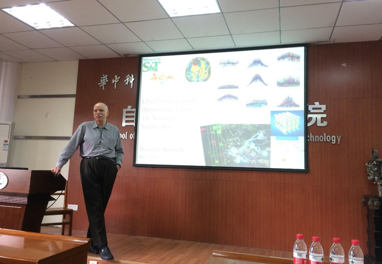 5月3日上午9时,公司111引智基地海外专家、美国密苏里科技大学Donald Wunsch教授应邀来公司进行学术交流,并作了题为“Challenges and Opportunities in Neural Networks”的学术报告。公司关治洪教授,曾志刚教授,王小平教授,温世平副教授,刘慧副教授等30多位师生参加了报告会。