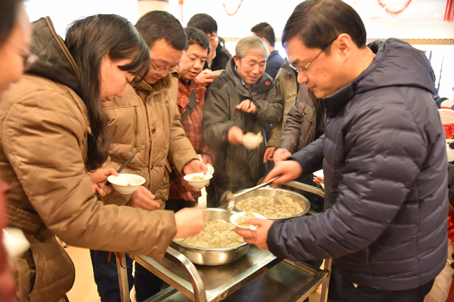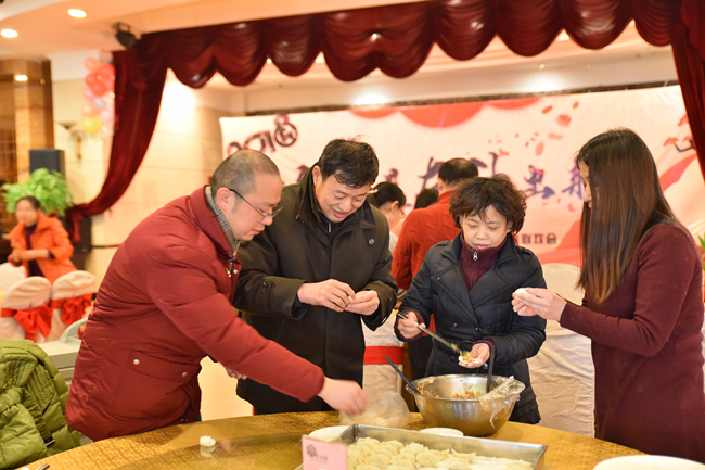 中午,老师们早早来到百景园三楼大厅,一起包饺子欢度佳节,一双双巧手捏出一个又一个饺子,大家一边干活一边唠家常,不一会儿盘子里就放满了饺子,饱满圆润的饺子中包着的是满满的欢乐,饺子煮好后一出锅便被一抢而空。随后党委书记张耀宣读了公司2017年表彰决定,对在教学科研、人才培养、行政管理、国际交流合作、公益活动等方面取得突出成绩的教职工予以表彰。