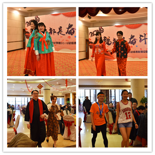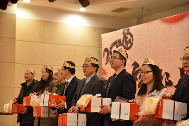 表彰结束后老师们用丰富多彩、别出心裁的节目辞旧迎新:智能系联唱《说唱脸谱》将传统的戏曲与歌曲相结合,情深意远,大气磅礴;行政各科室穿上旗袍、西装、汉服为大家带来《风采新年》时装秀;测量系与实验中心齐声朗诵《起航看中国》,带领大家回顾祖国近年来的发展;飞导系合唱《我爱你中国》,洪亮的歌声振奋人心;系统系合唱《相亲相爱一家人》,表达了老师们间温馨有爱的氛围;员工工作组带来的话剧表演《学工组那些事》生动展现辅导员的日常生活与工作;自控系带来合唱《红军不怕远征难》带领大家重温长征路,合唱结束后,原创诗歌朗诵《自动化,走在新长征的路上》将联欢会推向高潮;公司领导班子的歌曲串烧《在希望的道路上》,结合公司2017年的大事记改编歌词,歌声铿锵有力,成绩催人奋进,展现了自动化公司积极向上的精神风貌,一个个自导自演的节目让大家欢声笑语不断。公司还为满整十岁的老师举行集体生日,同时为本命年老师送上祝福。