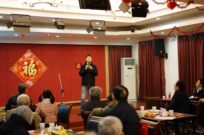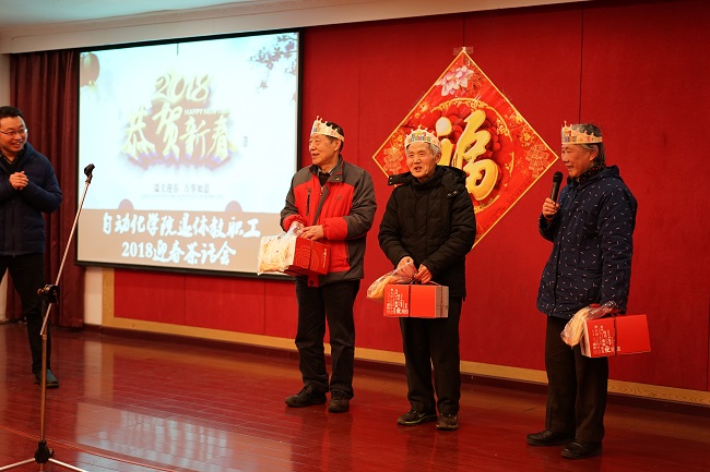 茶话会上,全体参会教师齐声高唱《众人划桨开大船》,振奋的歌声让大家感受到自动化公司紧密团结、欣欣向荣的蓬勃生机。张耀向全体退休教职工全面汇报了2017年公司在党建工作、团队建设、科学研究、人才培养、团队队伍、国际交流等各方面取得的成绩。他指出,公司的各项成绩离不开一代代教职工的辛勤付出和关心支持,他代表公司全体师生向各位老前辈表示衷心的感谢并送上了新年祝福;曹治国向退休教职工汇报了公司“全自主无人艇”首航的喜讯,对退休教职工对公司的关心和支持表示衷心的感谢,并请各位前辈继续关心和支持公司“双一流”建设。赵丽秋汇报了2017年公司退休教职工各项开支事宜,全年公司认真组织了退休教职工各项活动、体检、教育学习等工作。