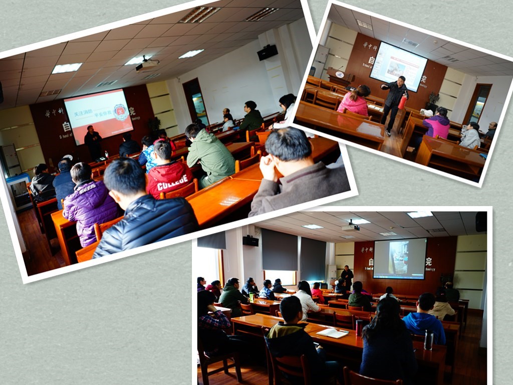 毛科长结合近年来的火灾案例特别是实验室火灾,高层建筑、电气火灾案例,就消防日常管理、平常检查等基本常识、消防火灾的应急和预防、消防器材的正确使用方法进行了深入浅出的讲解。教职工们结合自己工作和生活中所接触到的消防安全隐患进行了互动与沟通。随后毛科长列举了大量实例和现场的图片,展示缺乏消防意识和消防知识的严重危害。最后结合实际,对火灾特点、预防火灾的基本常识,火灾发生、发展、熄灭的基本规律以及发生火灾后相关的法律法规进行了讲解。