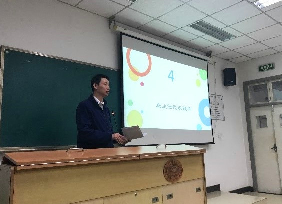 分享结束后,自动化公司经理、卓越1701班班主任曹治国教授上台致辞,他表示班长在整个班级建设中有着十分重要的作用,作为班长应该要有自己的工作计划,把握好班级工作的节奏,要学会与班委之间的沟通与分工,更要着眼于班级同学的学业、心理以及文化方面,尽可能的关注到每一位同学,同时也要多与辅导员、教师班主任、研究生班主任及时沟通,掌握好班级情况。希望各位班长们脚踏实地、勇于担当,将班级建设的更加美好。