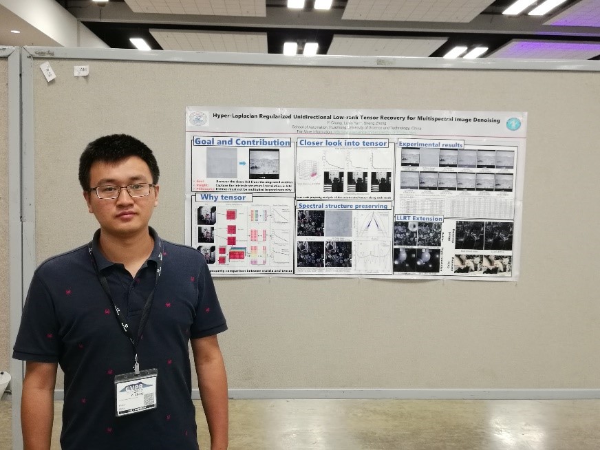 同年7月,他们的另一项研究成果被国际计算机视觉与模式识别会议(CVPR2017)录用发表,论文题目为“Hyper-Laplacian Regularized Unidirectional Low-rank Tensor Recovery for Multispectral Image Denoising”。多光谱图像包含谱段维信息,对其有效表达与建模是提高光谱重建复原性能的关键难题。该研究工作发现,谱-空非局部自相似性是多谱图像相关性的本质属性,提出基于低秩张量的时-空-谱联合稀疏表示模型,在图像去噪、去模糊及超分辨率等多光谱图像复原问题上均取得优秀性能,并推广到彩色图像处理、视频分析等应用领域。