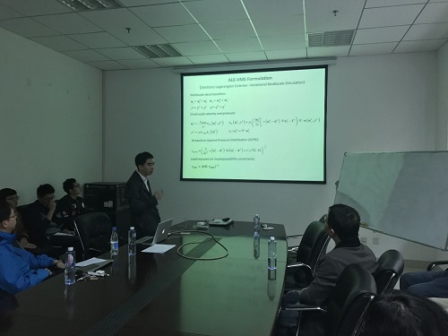 在报告中,邓晓蔚博士首先为公司师生介绍了新能源风力发电巨大的应用潜力,以及大型风力发电机叶片的设计,制造,安装等过程面临的巨大挑战。随后邓晓蔚博士基于数值模拟方法建立了风机叶片结构的基本模型,模拟仿真了风机叶片在不同外界环境情况下的受力变形和尖端位移。同时,邓晓蔚博士还介绍了大型风电叶片先进流固耦合平台,并且通过加速度传感器采集数据,进行风机叶片的健康状态监测、损伤预警及寿命预测。报告最后,邓晓蔚博士为公司师生展示了NASA、美国基金委等的可展开轻型空间结构在航空航天中的广泛应用项目成果。邓晓蔚博士的报告高屋建瓴、视野开阔、积极追踪国际前沿,为师生留下了非常深刻的印象。