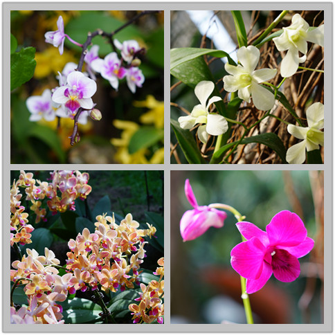 首先参观的是景观温室,3000多平米的热带雨林中林木郁郁葱葱,人造山岩上阔叶植物连蔓俏立,参天棕榈下倚靠着绰约多姿的曼妙知性女性,姹紫嫣红的繁花与彩衣云裳交相辉映,独成一派婉柔清丽美景。