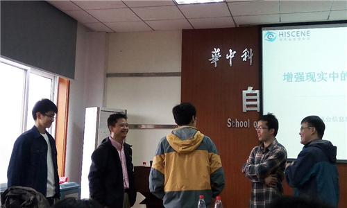 近年来,算法和硬件两方面的发展以及移动智能设备的普及从技术和市场两个方面极大得推动了增强现实的兴起和走向实用。计算机视觉作为对3D世界和3D交互理解的重要途径,在增强现实系统中起着至关重要的作用。在本报告中,凌海滨教授首先回顾了现代增强现实的发展及相应的技术体系,然后总结增强现实中常用的计算机视觉技术,最后介绍了他在相关领域的一些最新探索,包括对于平面跟踪技术的研究,基于深度图像的3D手势,以及图匹配方面一些进展。凌海滨教授的报告精彩纷呈,会后交流环节也和同学们有很好的互动,与会师生获益良多。